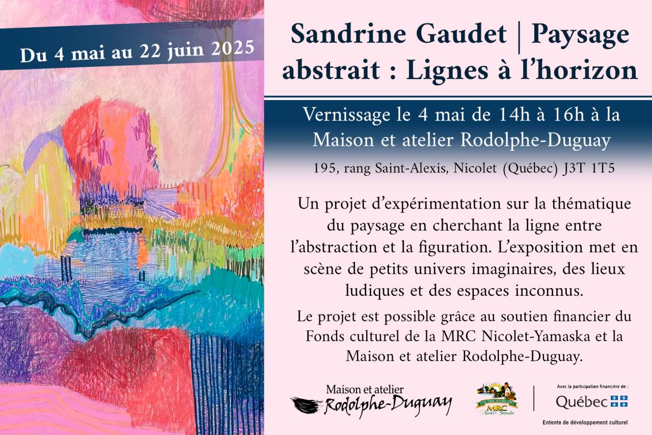 Le projet Paysage abstrait : lignes à l’horizon est possible grâce au soutien financier du Fonds culturel de la MRC Nicolet-Yamaska et la Maison et atelier Rodolphe-Duguay de Nicolet.